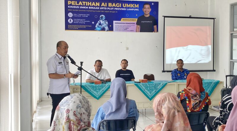 JABAROKENEWS.COM, Lampung – UPTD Pusat Layanan Usaha Terpadu (PLUT) Provinsi Lampung menyelenggarakan Pelatihan Artificial Intelligence (AI) bagi UMKM Binaan, bekerja sama dengan @ngontenpakeai.id. Kegiatan berlangsung di Ruang Pelatihan UPTD PLUT Provinsi Lampung (17/09/25).