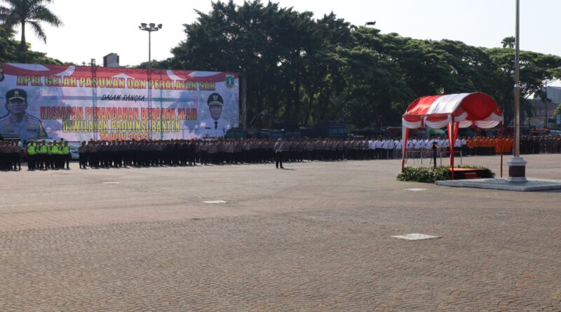 JABAROKE.COM – Serang, Kepolisian Daerah (Polda) Banten melaksanakan apel gelar pasukan dan peralatan SAR dalam rangka kesiapan penanganan bencana alam.