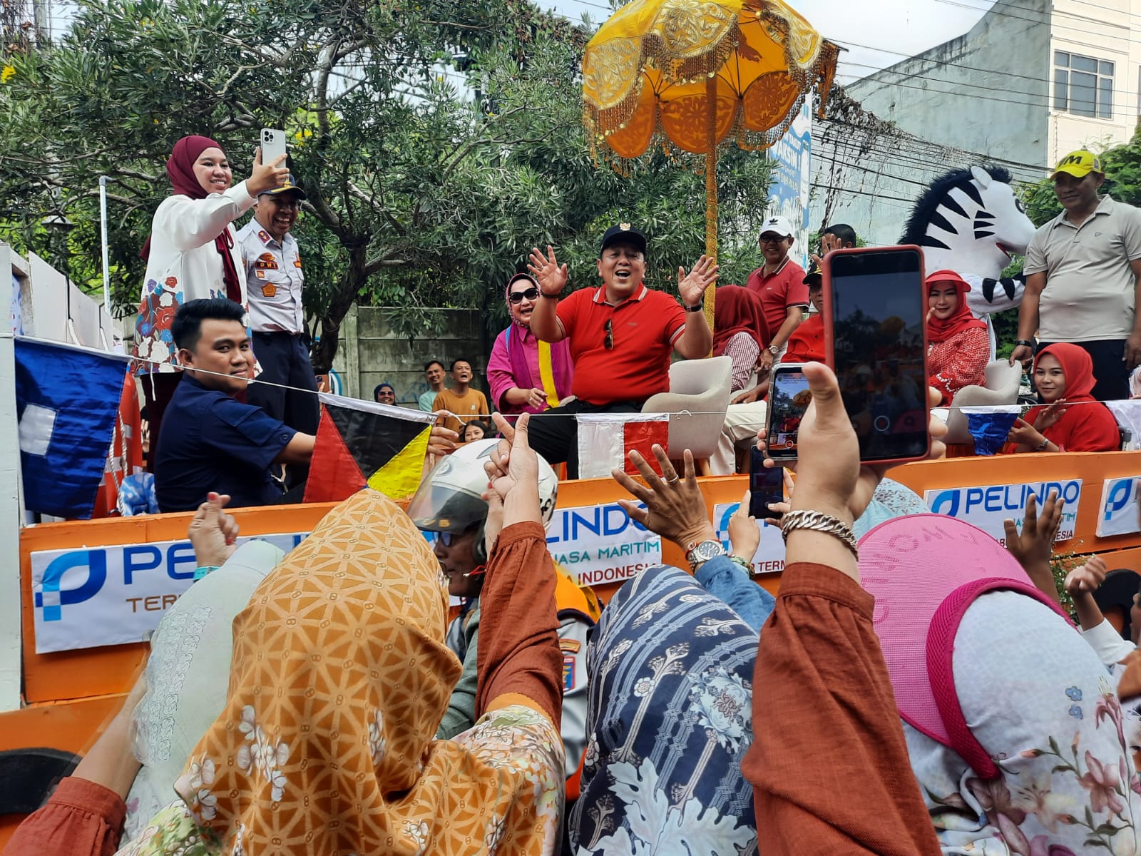 Menjelang akhir rangkaian, banyak warga antusias saat mengetahui salah satu kendaraan hias dinaiki oleh Gubernur Lampung Arinal Djunaidi dan istri Riana Sari.