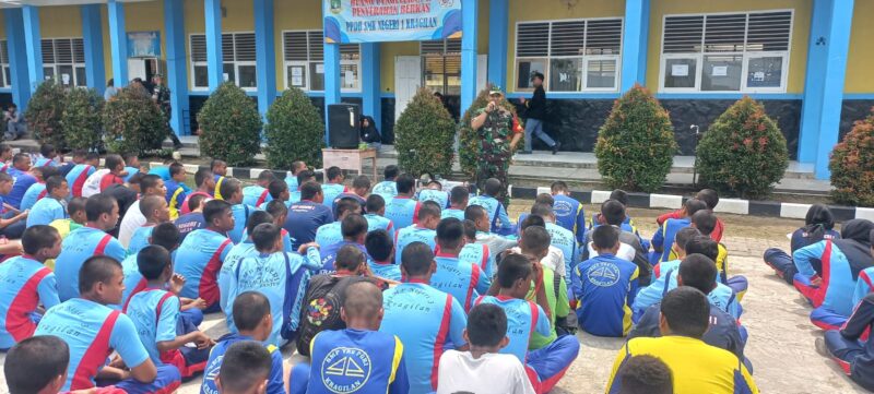 FAJARLAMPUNG.COM – Serang, Untuk mencegah terjadinya kenakalan remaja, Bintara Pembina Desa (Babinsa) Koramil 0602-18/Kragilan Kodim 0602/Serang Sersan Satu (Sertu) Mujib, melaksanakan kegiatan memberikan Wawasan Kebangsaan (Wasbang) tentang Pancasila, kepada pelajar SMK Negeri 1 Kragilan, bertempat di lapangan SMK Negeri 1 Kragilan Kabupaten Serang Provinsi Banten, Sabtu (12/08/2023).