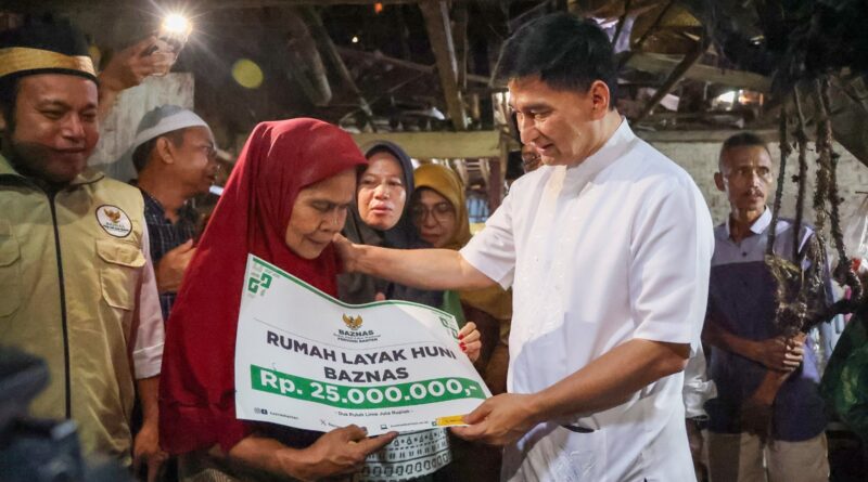 JABAROKENEWS.COM, Banten – Wakil Gubernur (Wagub) Banten Achmad Dimyati Natakusuma menyalurkan bantuan perbaikan Rumah Tidak Layak Huni (RTLH) menjadi rumah layak huni di Kabupaten Pandeglang, Senin (2/3/2026). Bantuan diberikan kepada Nurmah (81) di Kampung Kademangan dan Zaenudin (65) di Kampung Caringin Masjid, Desa Caringin, Kecamatan Labuan. Masing-masing mendapat bantuan Rp25 juta dari Badan Amil Zakat Infaq dan Sodakoh Nasional (Baznas) Provinsi Banten.