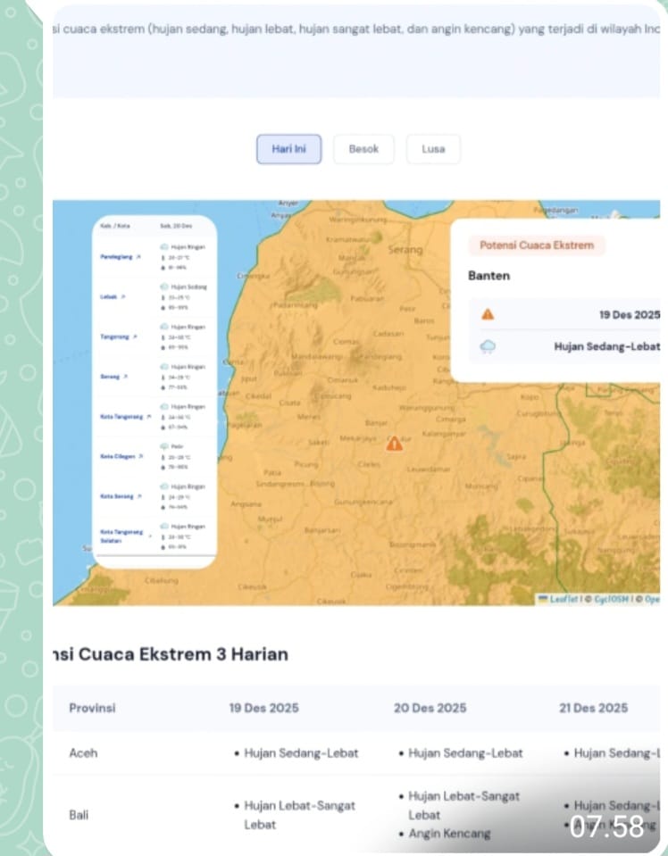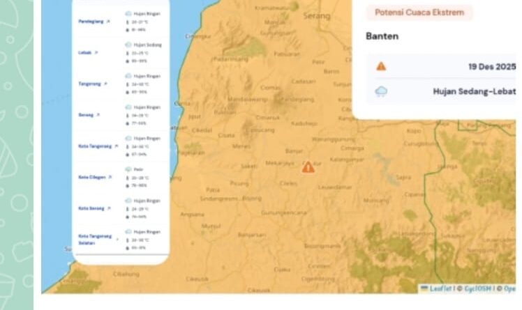 JABAROKENEWS.COM, Serang – Polda Banten kembali mengimbau masyarakat untuk meningkatkan kewaspadaan terhadap potensi cuaca ekstrem berdasarkan pembaruan informasi dari Badan Meteorologi, Klimatologi, dan Geofisika (BMKG) Banten per Sabtu, 20 Desember 2025.