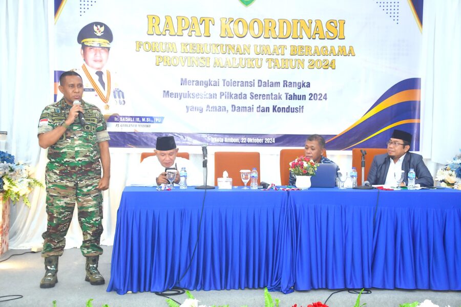 Atas nama Pemerintah Daerah dan seluruh masyarakat Maluku, selaku Pj Gubernur kami memberikan apresiasi positif dan penghargaan yang tinggi kepada Danrem 151/Binaiya atas pemberian materinya yang sangat luar biasa dan profesional di Acara Rapat Koordinasi Forum Kerukunan Umat Beragama Provinsi Maluku Tahun 2024, dengan Tema, “Merangkai Toleransi Dalam Rangka Mengsukseskan Pilkada serentak Tahun 2024 Yang Aman, Damai dan Kondusif”, ungkap Pj Gubernur Sadali kepada wartawan
