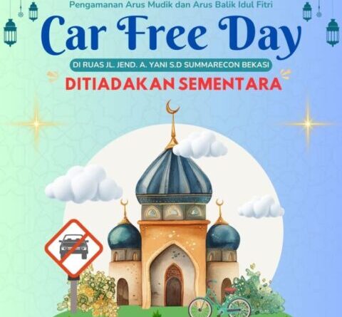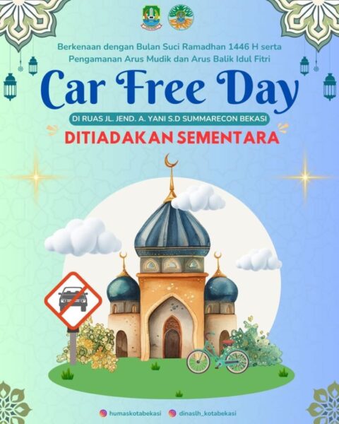 Oleh karena itu, diinformasikan bahwa Hari Bebas Kendaraan Bermotor (Car Free Day) di Ruas Jalan Jenderal Ahmad Yani sampai dengan Summarecon Kota Bekasi ditiadakan sementara dan akan dimulai kembali selepas cuti bersama Idul Fitri 1446 H. (Nad)