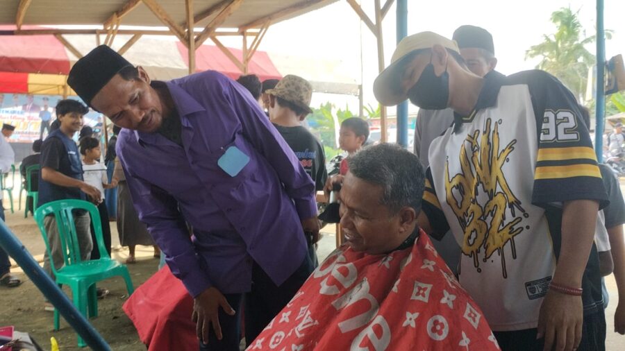 Cukur Gratis Warnai Perayaan HUT Desa Sindangheula, Kades Turut Ambil Bagian