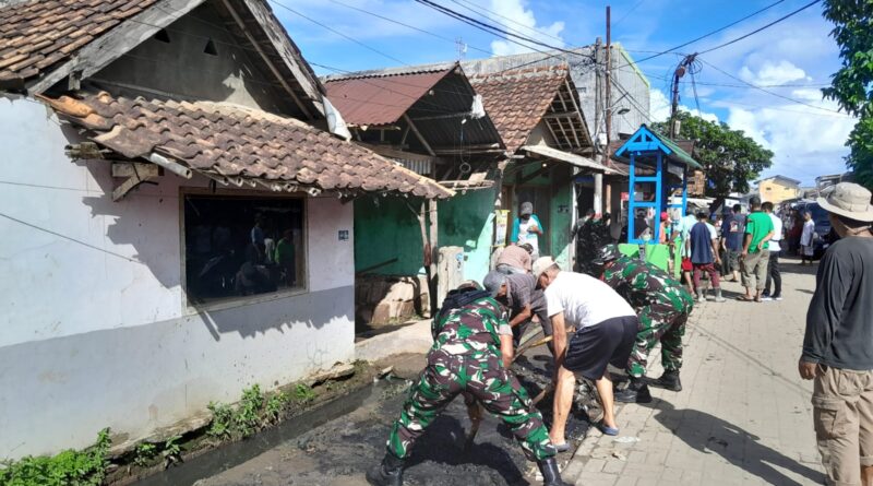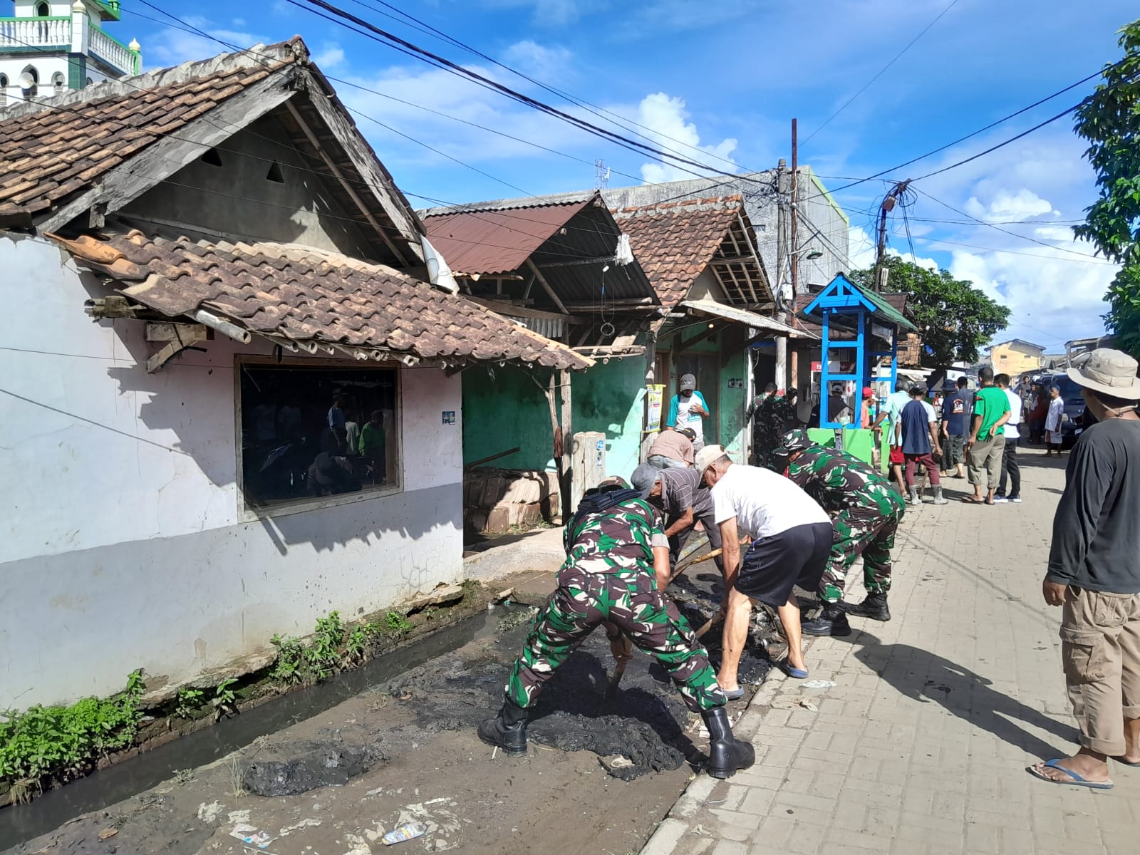 Danramil 0110/Labuan, Pimpin langsung Aksi Peduli Lingkungan Bersihkan Drainase