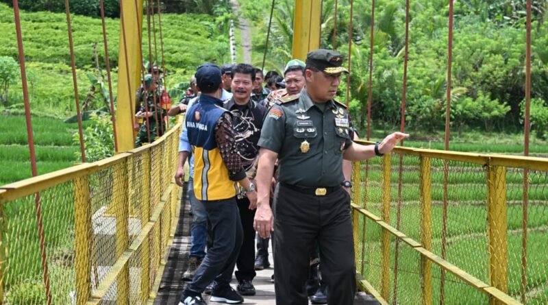JABAROKENEWS.COM, Wonosobo – Komandan Korem 072/Pamungkas Brigjen TNI Bambang Sujarwo meninjau langsung rencana renovasi Jembatan Gantung Garuda di Desa Kalidadap, Kecamatan Wadaslintang, Kabupaten Wonosobo, Senin (12/1/2026).