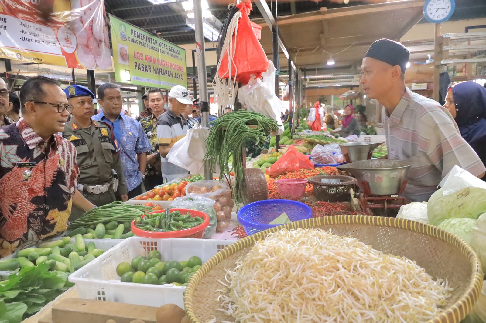 Pj. Wali Kota Bekasi menyampaikan adanya kenaikan harga bahan pangan diwilayah dikarenakan imbas gagal panen dari sebagian petani ke pemasok, yang menyebabkan ketersediaan stock berkurang dan permintaan tinggi.