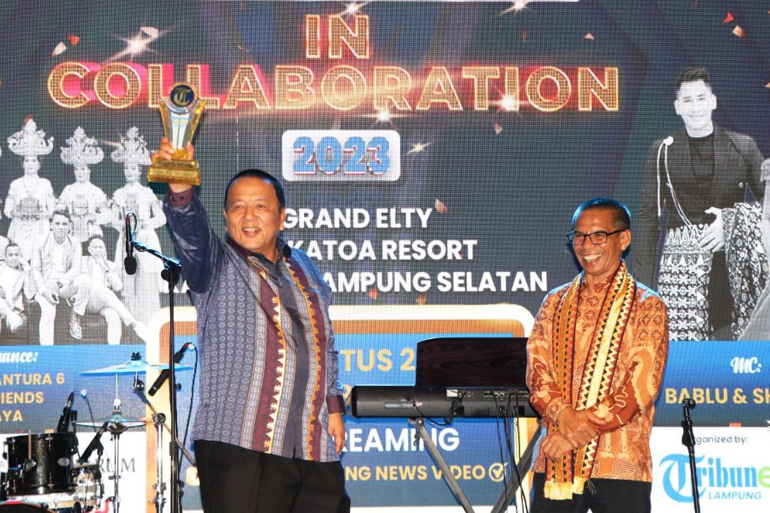 FAJARLAMPUNG.COM – Lampung Selatan, Gubernur Lampung Arinal Djunaidi terima penghargaan dalam ajang Tribun Lampung Award in Collaboration 2023 di Grand Elty Krakatoa Resort, Rabu (23/8/2023).