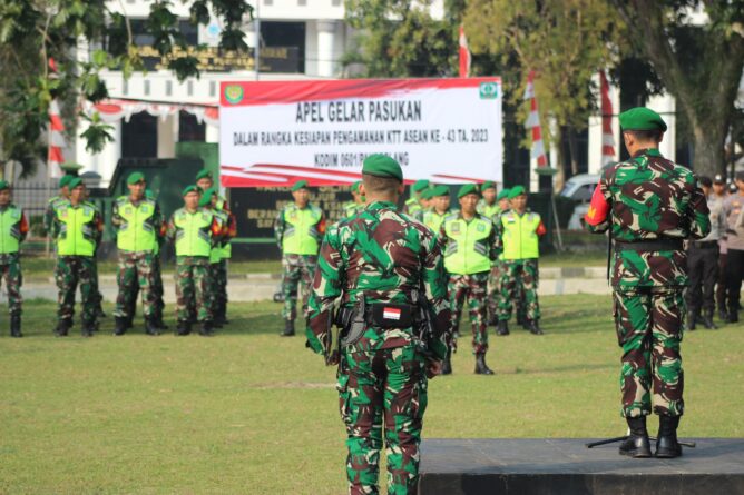 “kita laksanakan pengecekan kesiapan, materil, personel, maupun sarana dan prasarana dalam mendukung kegiatan pengamanan KTT ASEAN ke-43,” ujar Dandim.