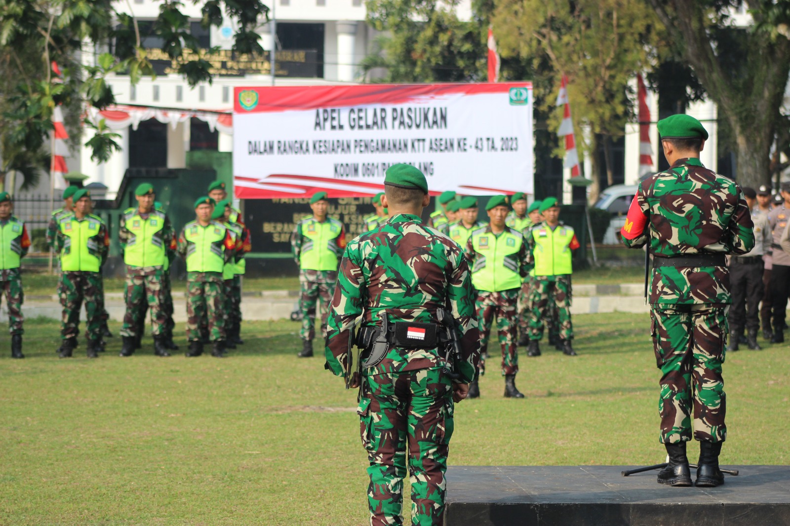 Dalam sambutannya, Dandim Letkol Inf. Suryanto, S.A.P., mengtakan bahwa apel ini bertujuan untuk melakukan pengecekan kesiapan personel dalam mendukung kegiatan pelaksanaan KTT ASEAN di Jakarta.