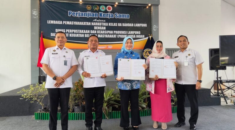 JABAROKENEWS.COM, Bandar Lampung —- Pemerintah Provinsi Lampung melalui Dinas Perpustakaan dan Kearsipan terus berkomitmen memperluas jangkauan layanan literasi dan pendidikan inklusif bagi seluruh lapisan masyarakat. Sebagai wujud nyata komitmen tersebut, Dinas Perpustakaan dan Kearsipan Provinsi Lampung menandatangani Perjanjian Kerja Sama (PKS) dengan Lembaga Pemasyarakatan (Lapas) Narkotika Kelas IIA Bandar Lampung dan Pusat Kegiatan Belajar Masyarakat (PKBM) Nusa Indah Bandar Lampung.