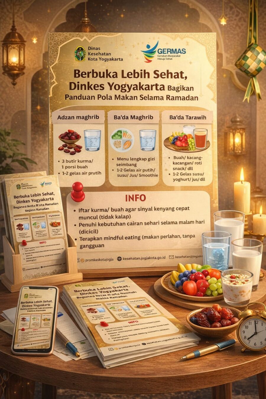 JABAROKENEWS.COM, YOGYAKARTA – Dinas Kesehatan Kota Yogyakarta mengeluarkan imbauan kepada masyarakat untuk menerapkan pola berbuka puasa yang sehat dan seimbang selama bulan Ramadan. Edukasi tersebut disampaikan melalui poster kampanye kesehatan yang mengusung pesan “Saat Berbuka = Segerakan”.