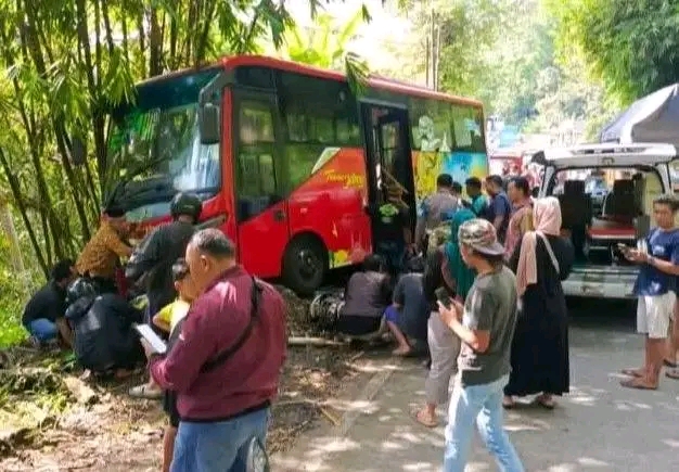 “Bus membuang ke kanan lalu menabrak mobil pikap L300 dan sepeda motor Jupiter dari arah berlawanan,” jelas petugas.