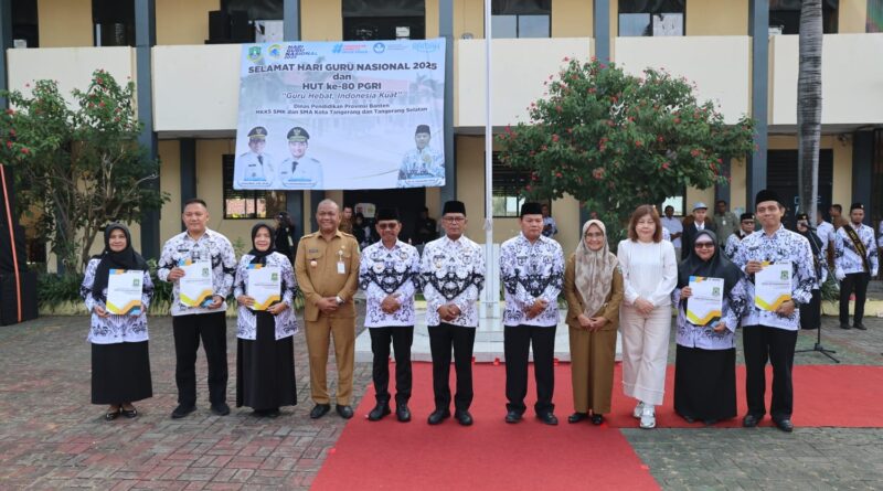 Apresiasi tersebut disampaikan Gubernur Andra Soni usai penandatanganan Nota Kesepahaman (MoU) BKK SMK yang diselenggarakan bersamaan dengan apel pagi peringatan Hari Guru Nasional (HGN) 2025 di SMKN 2 Kota Tangerang, Selasa (25/11/2025).
