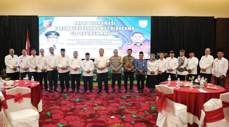 Rakor yang mengusung tema “Memperkuat Komitmen Pemuka Agama Mewujudkan Pemilu 2024 Menuju Indonesia Kuat” tersebut juga dihadiri oleh Kapolda Lampung Irjen Pol Helmy Santika.