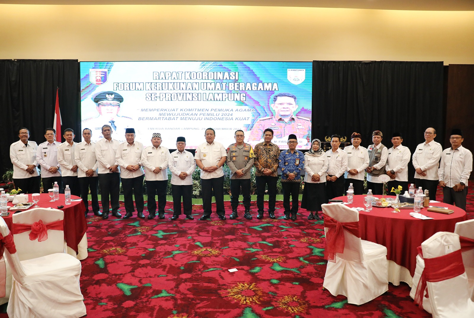 Rakor yang mengusung tema “Memperkuat Komitmen Pemuka Agama Mewujudkan Pemilu 2024 Menuju Indonesia Kuat” tersebut juga dihadiri oleh Kapolda Lampung Irjen Pol Helmy Santika.