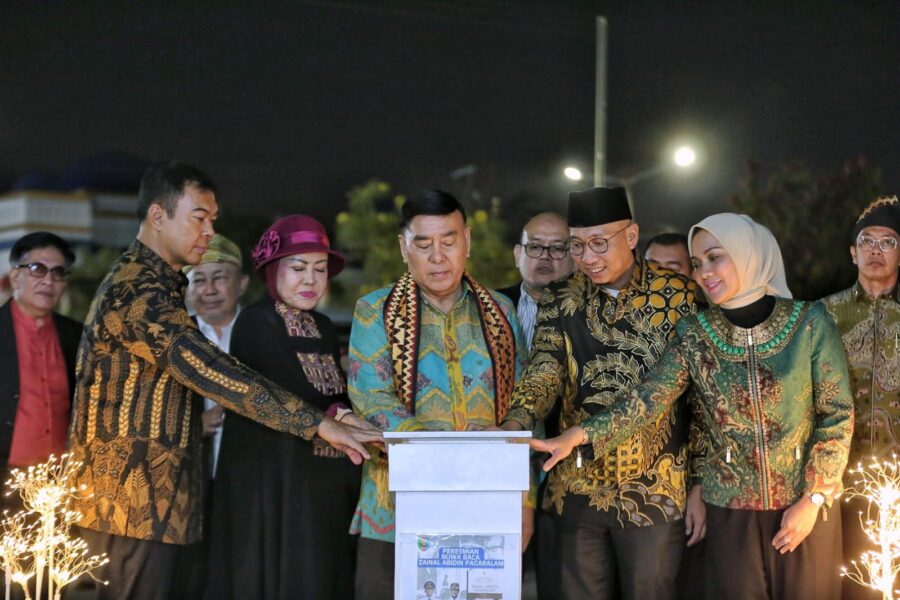 JABAROKOENEWS.COM, BandarLampung – Gubernur Lampung Rahmat Mirzani Djausal didampingi Bunda Literasi Provinsi Lampung Ibu Purnama Wulansari Mirza dan Gubernur Lampung periode 2004-2014 Sjachroedin ZP meresmikan nama perpustakaan daerah Lampung Nuwa Baca Zainal Abidin Pagar Alam, di Gedung Perpustakaan Daerah Lampung, Bandarlampung, Jumat (23/5/2025).