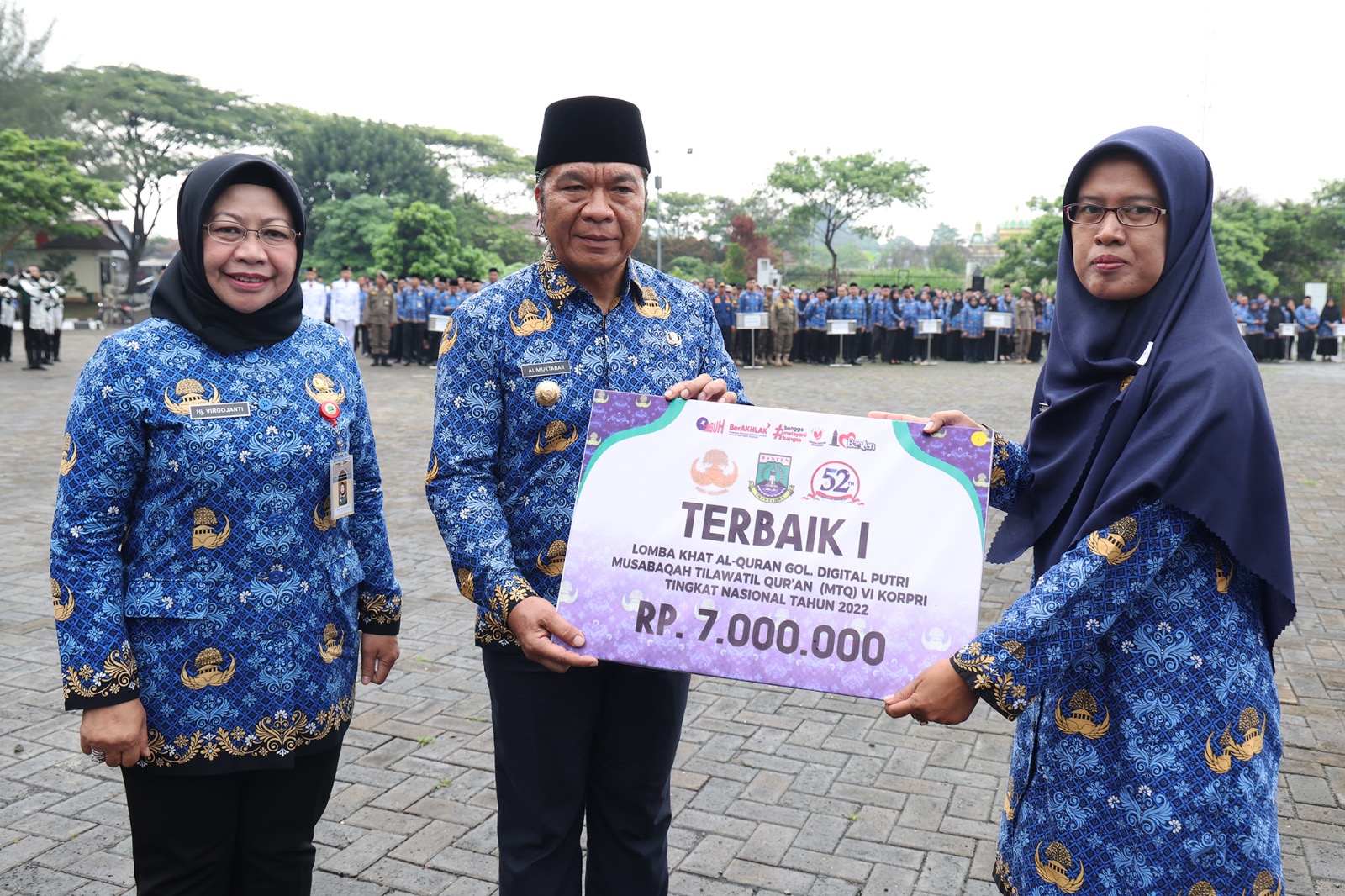 Dalam kesempatan tersebut, Al Muktabar menyerahkan penghargaan prestasi kepada anggota Korpri Provinsi Banten yang telah memperoleh prestasi, baik pada ajang MTQ VI KORPRI Tingkat Nasional di Padang Provinsi Sumatera Barat Tahun 2023, Pornas KORPRI XI Tingkat Nasional di Semarang Provinsi Jawa Tengah Tahun 2023 dan yang lainnya.