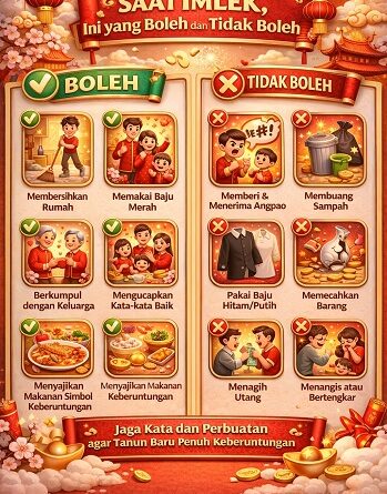 Melalui berbagai tradisi dan pantangan tersebut, Imlek mengajarkan pentingnya menjaga sikap, ucapan, serta hubungan dengan sesama. Lebih dari sekadar perayaan budaya, Imlek menjadi momentum refleksi diri dan ajakan untuk memulai tahun yang baru dengan hati yang bersih, pikiran positif, dan semangat kebersamaan. (Aga)