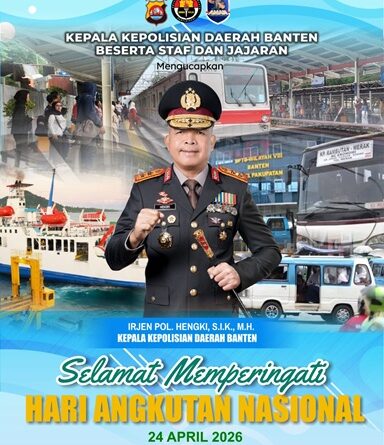 JABAROKENEWS.COM, Serang – Dalam rangka memperingati Hari Angkutan Nasional yang jatuh pada 24 April 2026, Kepala Kepolisian Daerah Banten Irjen Pol. Hengki menyampaikan ucapan selamat sekaligus apresiasi kepada seluruh insan transportasi atas dedikasinya dalam menjaga kelancaran mobilitas masyarakat.