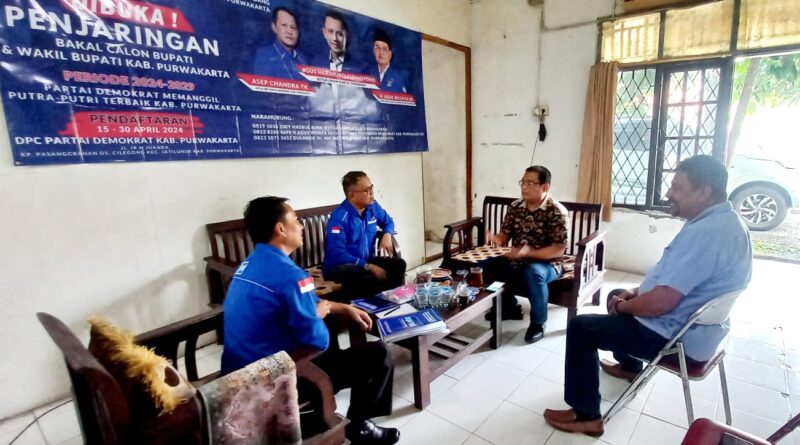 Ketua Dewan Pimpinan Cabang (DPC) Partai Demokrat Kabupaten Purwakarta Asep Chandra tk melalui Sekretaris DPC H Agus wijaya dan ketua BPOKK DPC Partai Demokrat Kabupaten Purwakarta Dulnasir sebagai tim penjaringan mengatakan, pihaknya membuka kesempatan kepada siapa saja yang ingin mendaftar sebagai Bakal Calon Bupati Purwakarta melalui Partai Demokrat di Sekretariat jalan Letjen Basuki Rahmat no 25 Sindang Kasih Kecamatan Purwakarta 41112 .