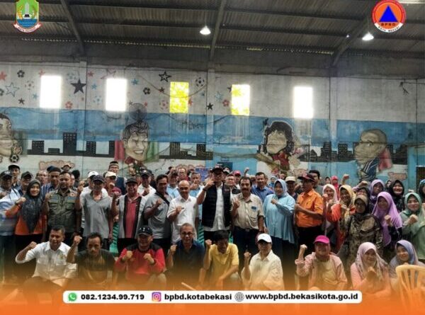 JABAROKENEWS.COM, KotaBekasi – Badan Penanggulangan Bencana Daerah (BPBD) Kota Bekasi menyelenggarakan kegiatan Pelatihan Keluarga Tangguh Bencana (Katana) sebagai bagian dari upaya penguatan kesiapsiagaan masyarakat di wilayah rawan bencana. Kegiatan ini digelar selama tiga hari di 3 kelurahan prioritas dan diikuti oleh total 600 peserta yang mewakili keluarga dari kawasan rawan bencana.