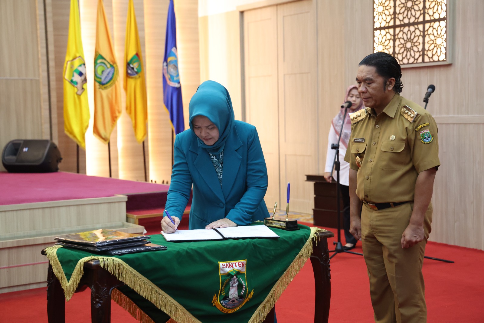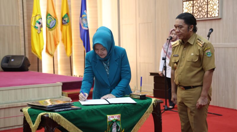 JABAROKE.COM – Serang, Ketua Pembina Posyandu Provinsi Banten Tine Al Muktabar mengukuhkan Ketua Pembina Posyandu Kabupaten/Kota se-Provinsi Banten. Pengukuhan dilaksanakan di Pendopo Gubernur Banten KP3B Curug, Kota Serang, Rabu (13/3/2024).