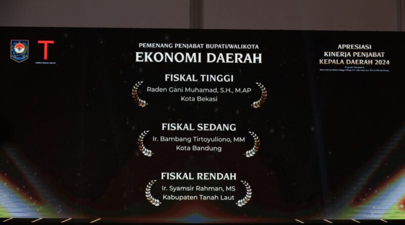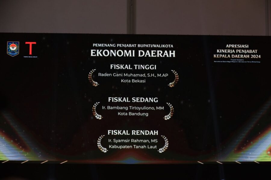Atas hasil penilaian berdasarkan Laporan Evaluasi Penjabat Kepala Daerah Per-Triwulan serta proses penjurian melalui metode tanya jawab, Pj. Wali Kota Bekasi, Gani Muhamad berhasil meraih predikat sebagai Penjabat Kepala Daerah Fiskal Tinggi dengan Kinerja Total dan juga sebagai Penjabat Kepala Daerah Fiskal Tinggi dengan Ekonomi Daerah Terbaik.