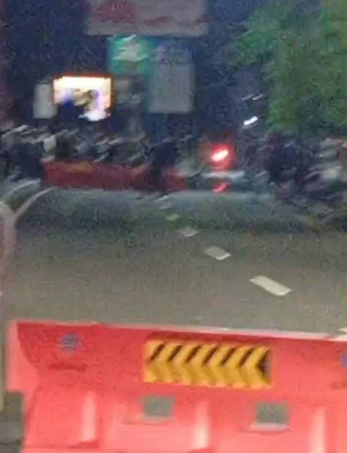 Mereka kemudian memadati depan gerbang dan memblokade akses jalan utama. Situasi sempat memanas ketika massa mulai mendorong pembatas jalan di sisi barat.