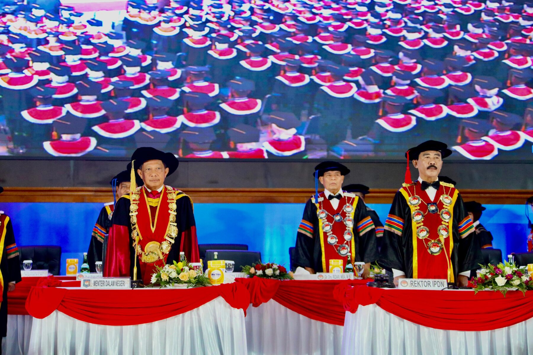 Hal itu disampaikannya pada Sidang Terbuka Senat IPDN dalam Rangka Wisuda Program Doktor Ilmu Pemerintahan, Program Magister Terapan Studi Pemerintahan, dan Program Sarjana Terapan Ilmu Pemerintahan Tahun Akademik 2023/2024. Kegiatan tersebut berlangsung di Balairung Rudini Kampus IPDN Jatinangor, Kabupaten Sumedang, Jawa Barat, Senin (29/7/2024).