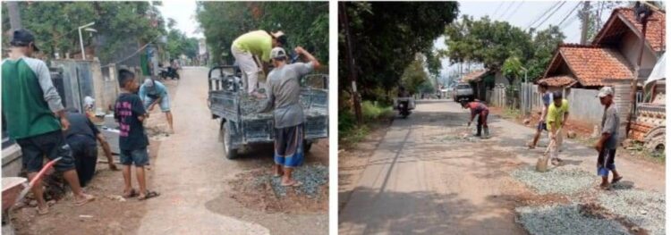 JABAROKE.COM – Purwakarta, Pemerintah Desa (Pemdes) Desa Cikaobandung Kecamatan Jatiluhur Kabupaten Purwakarta Jawa Barat melakukan gotong royong memperbaiki jalan rusak karena proyek pembangunan pembangunan kereta cepat. Minggu (26/11/2023).