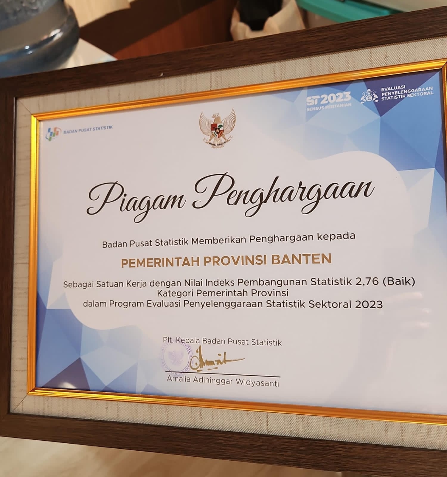 Penghargaan tersebut diberikan kepada Pemprov Banten setelah dilakukan Program Evaluasi Penyelenggaraan Statistik Sektoral (EPSS) Tahun 2023.