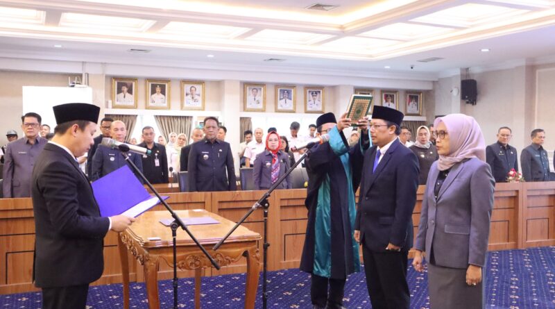 JABAROKENEWS.COM, Bandar Lampung – Atas nama Gubernur Lampung, Sekdaprov Marindo Kurniawan melantik dan mengambil Sumpah/Janji Jabatan 2 Pejabat Pimpinan Tinggi Pratama di lingkungan Pemerintah Provinsi Lampung, di Ruang Rapat Utama, Rabu (6/8/2025).