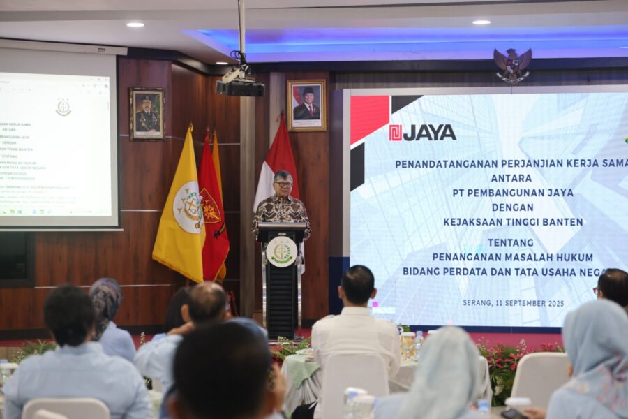 JABAROKENEWS.COM, Banten – Kamis 11 September 2025 bertempat di Aula Gedung Utama Kejaksaan Tinggi Banten, Kepala Kejaksaan Tinggi Banten Dr. Siswanto, S.H., M.H, memberikan sambutan pada Acara Penandatanganan Perjanjian Kerja Sama antara Kejaksaan Tinggi Banten dengan PT. Pembangunan Jaya.