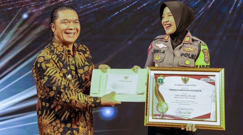 Dalam kesempatan itu, Al Muktabar juga memberikan penghargaan atas partisipasi dan koordinasi penyelenggaraan pemerintah daerah tahun 2023 kepada Forkopimda Provinsi Banten, instansi vertikal di Provinsi Banten serta penghargaan khusus atas partisipasi dan kerjasama dalam pengamanan ketertiban lalu lintas di Provinsi Banten kepada Kasat Lantas Polres Serang AKP Tiwi Afrina.