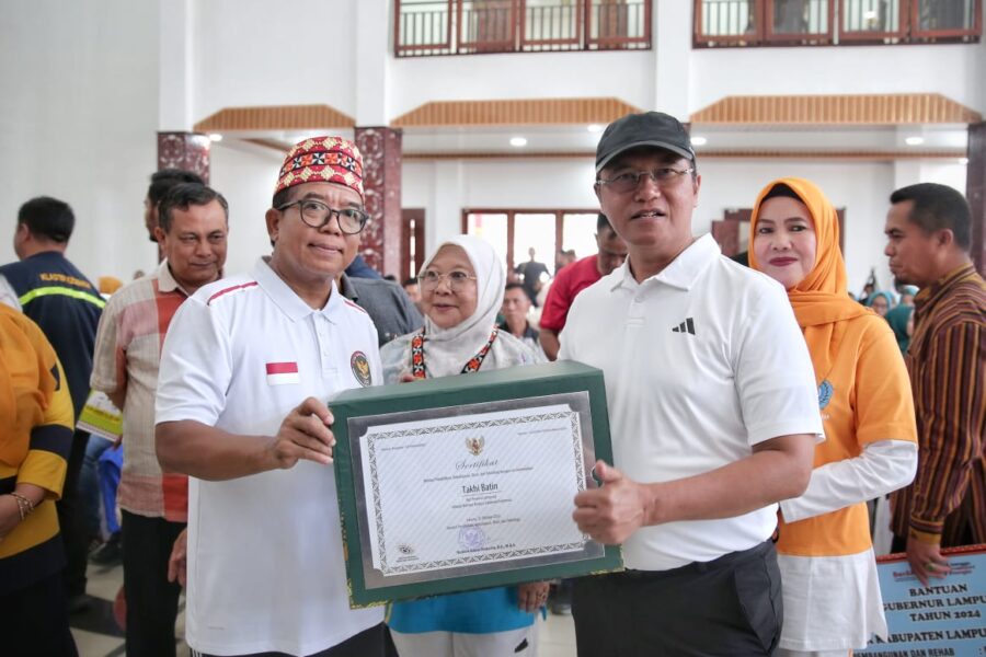 Pada kesempatan tersebut juga, Pj. Gubernur Samsudin didampingi Pj. Ketua TP-PKK Provinsi Lampung Maidawati Retnoningsih memberikan sejumlah bantuan kepada masyarakat Lampung Barat, diantaranya bantuan 50 paket sembako dan dua kursi roda, 4 unit mesin jahit, bantuan benih ikan lele sebanyak 30 ribu ekor dan pakan ikan sebanyak 240 kg.