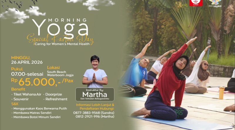 Menariknya, dengan tiket terjangkau sebesar Rp 65.000, peserta sudah bisa menikmati berbagai benefit seru. Mulai dari akses wahana air Waterboom Jogja setelah sesi yoga, refreshment, suvenir eksklusif, hingga kesempatan membawa pulang doorprize menarik.