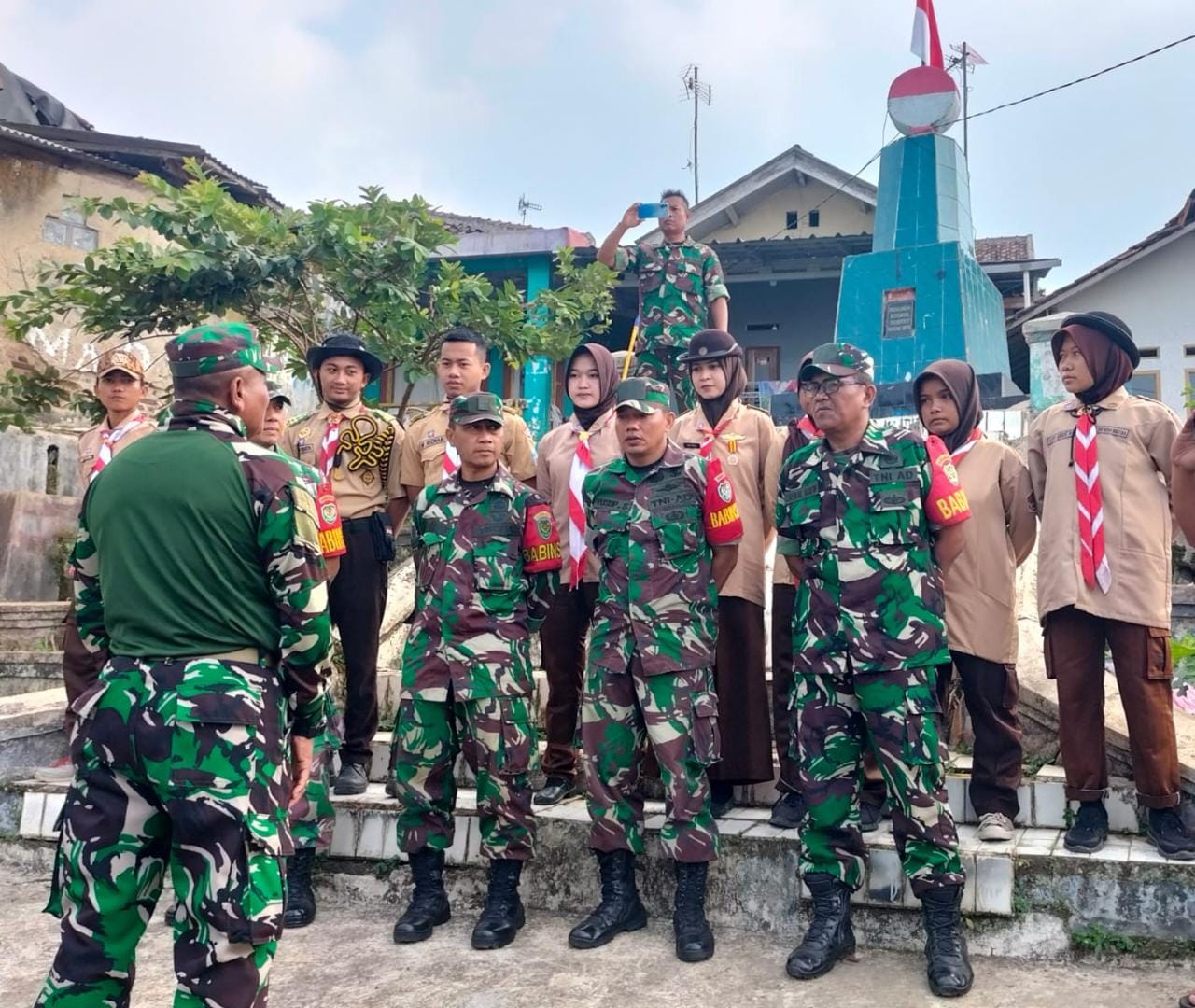 Personel Koramil 0103/Banjar dan Pramuka Saka Wira Kartika Gotong Royong Bersihkan Tugu Monumen Pasukan Sancang Lodaya