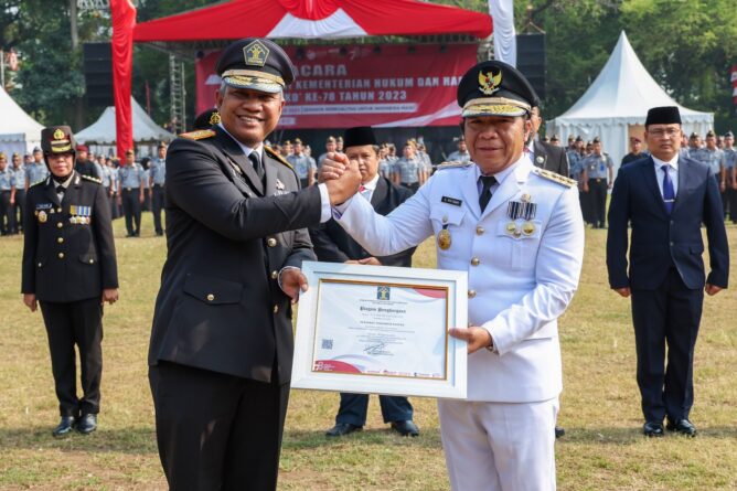 FAJARLAMPUNG.COM – Banten, Penjabat (Pj) Gubernur Banten Al Muktabar meraih penghargaan dari Kantor Wilayah Kementerian Hukum dan HAM Republik Indonesia Provinsi Banten. Penghargaan diterima oleh Pj Gubernur Banten Al Muktabar pada Peringatan Hari Kementerian Hukum dan HAM atau Hari Dharma Karya Dhika (HDKD) Ke-78 Tahun 2023 di Lembaga Pembinaan Khusus Anak Kelas 1 Tangerang, Kelurahan Sukaasih, Kecamatan Tangerang, Kota Tangerang, Senin (21/8/2023).