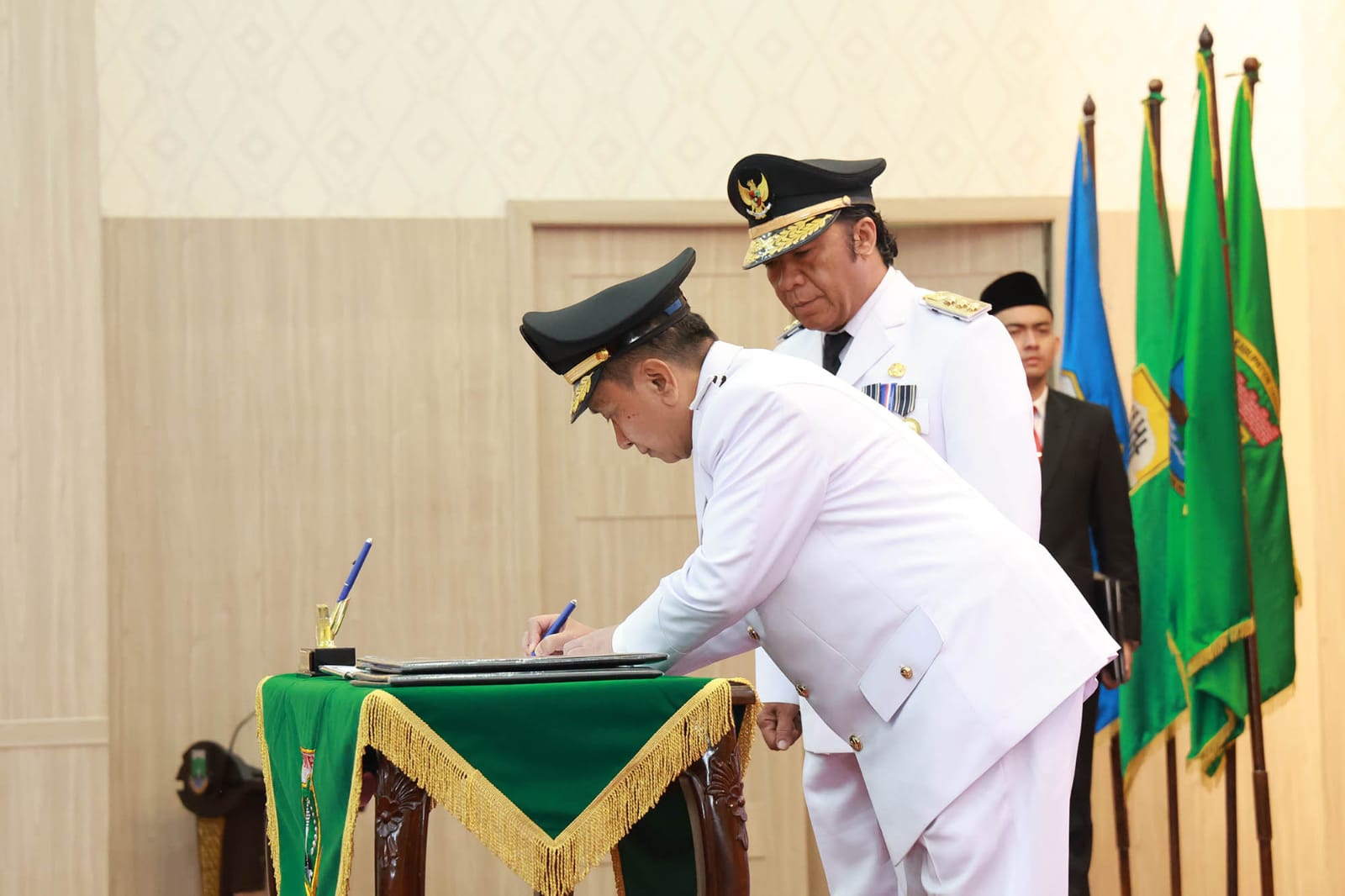 Selain itu, Al Muktabar juga turut menandatangani saksi serah terima jabatan dari Wali Kota Serang periode 2018-2023 Syafrudin kepada Pj Wali Kota Serang Yedi Rahmat, serta menyaksikan penyerahan memori jabatan.(Wan)