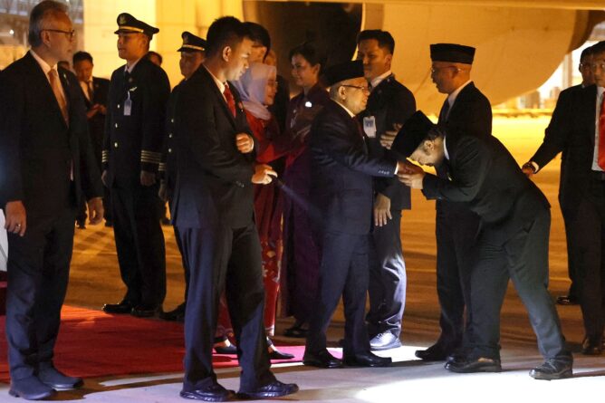 FAJARLAMPUNG.COM – Banten, Penjabat (Pj) Gubernur Banten Al Muktabar bersama Forum Koordinasi Pimpinanan Daerah (Forkopimda) Provinsi Banten sambut kedatangan Wakil Presiden Republik Indonesia KH Ma’ruf Amin beserta Ibu Hj. Wury Ma’ruf Amin dan rombongan tiba di tanah air, Selasa (19/09/2023) malam.