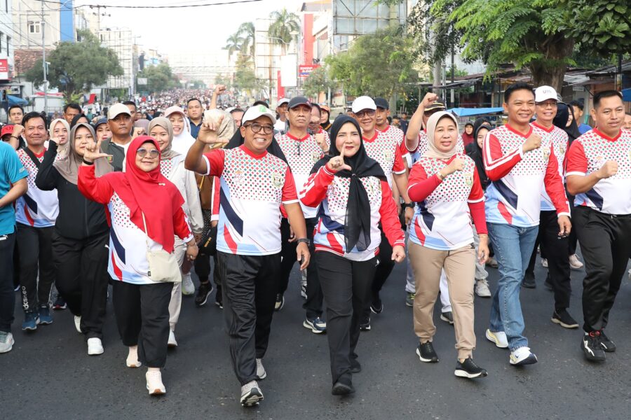 Pj. Gubernur Lampung Samsudin juga berkesempatan mengikuti jalan sehat ini, menikmati udara sejuk di pagi hari dan suasana keindahan Kota Bandarlampung.