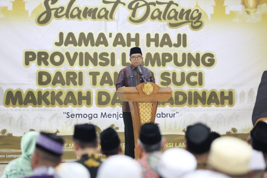 JABAROKENEWS.COM – Bandarlampung, Pj. Gubernur Lampung Samsudin menyambut kedatangan Jemaah Haji Kloter 3 JKG atau Kloter Pertama Provinsi Lampung Tahun 2024 di Gedung Madinatul Hujjaj Asrama Haji Provinsi Lampung, Minggu (23/6/2024).