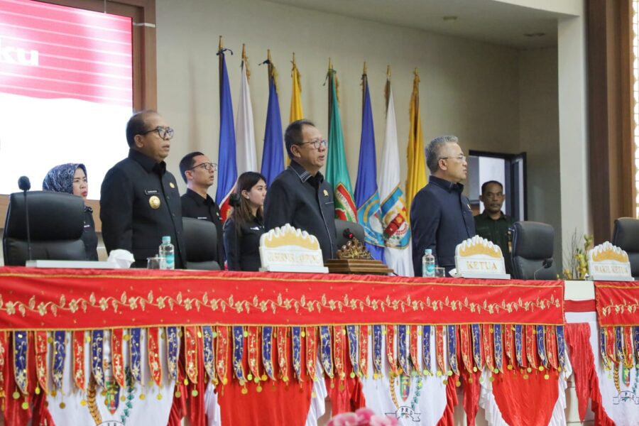 JABAROKENEWS.COM, BandarLampung – Pj. Gubernur Lampung Samsudin dan Ketua DPRD Lampung Mingrum Gumay menandatangani Rancangan Peraturan Daerah (Raperda) tentang Anggaran Pendapatan dan Belanja Daerah (APBD) Provinsi Lampung Tahun Anggaran 2025 dalam Rapat Paripurna DPRD Lampung di Ruang Sidang DPRD Lampung, Jum’at (30/8/2024)