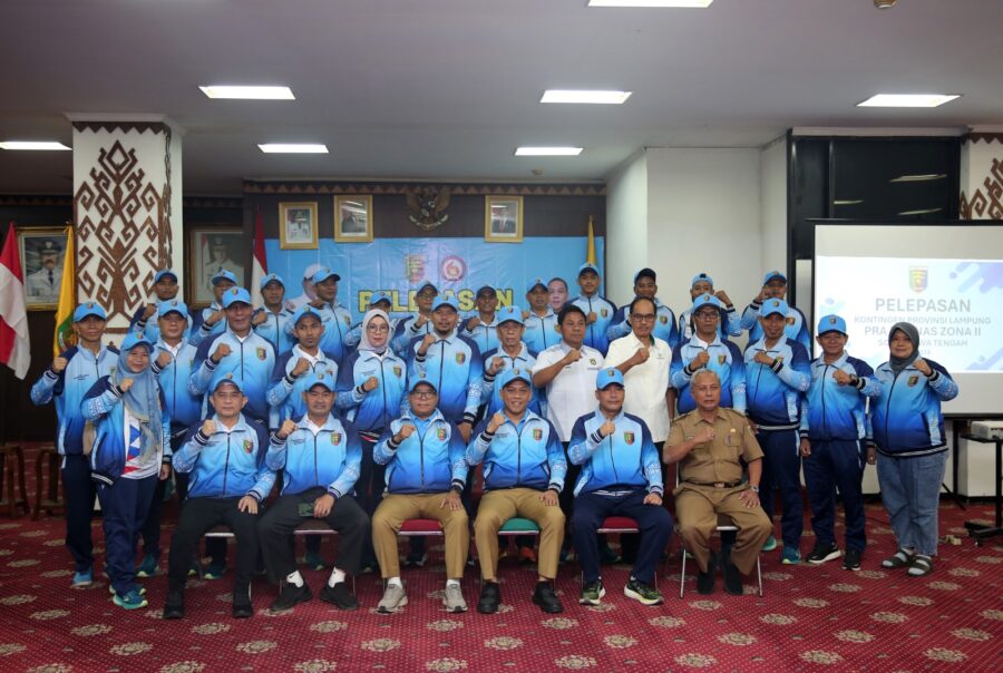 JABAROKENEWS.COM, Bandar Lampung – Pj. Gubernur Lampung Samsudin melepas Kontingen Lampung untuk mengikuti ajang Pra-Pekan Olahraga Pelajar Nasional (Pra-Popnas) Zona II Tahun 2024 ke Solo, Jawa Tengah, di Ruang Abung Balai Keratun, Kantor Gubernur Lampung, Bandarlampung, Senin (04/11/2024).
