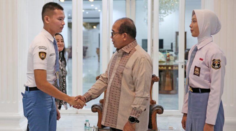 Pada kesempatan tersebut, Pj. Gubernur Samsudin mengucapkan selamat kepada Alvin dan Mutia karena telah terpilih sebagai anggota Paskibraka.