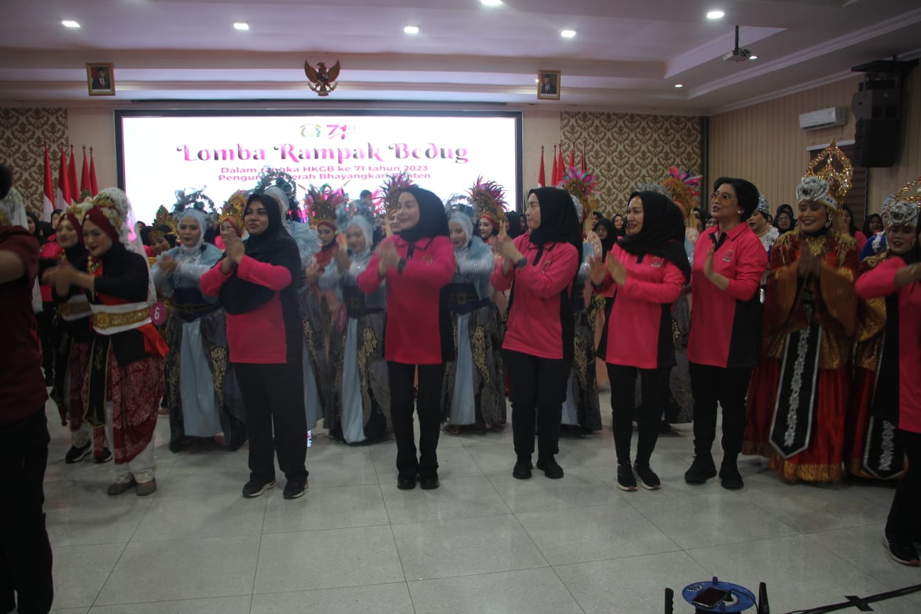 Dalam sambutannya Ny Wie Rudy memberikan apresiasi kepada organisasi Bhayangkari Daerah Banten. “Organisasi Bhayangkari memiliki peran penting, baik dalam Institusi Polri yang telah berkinerja baik selama ini, semoga di usia yang ke-71 ini dapat semakin berkiprah dan terus berkontribusi pada Institusi Polri,” katanya.