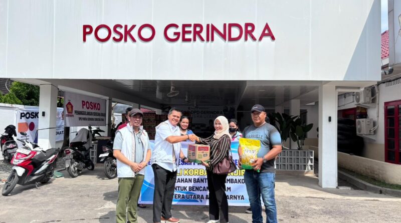 JABAROKENEWS.COM, Medan – Dalam seminggu terakhir ini Posko Bantuan Bencana DPD Gerindra Sumut di Jalan Jenderal Sudirman Medan menerima bantuan dari dua perusahaan, yakni PT Trimurti Perkasa dan PT Canang Indah.