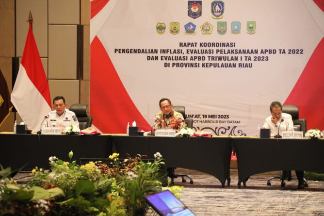 FAJARLAMPUNG.COM – Batam, Menteri Dalam Negeri (Mendagri) Muhammad Tito Karnavian menjelaskan dinamika inflasi dunia pada Rapat Koordinasi (Rakor) Pengendalian Inflasi, Evaluasi Pelaksanaan Anggaran Pendapatan dan Belanja Daerah (APBD) Tahun Anggaran (TA) 2022, dan Evaluasi APBD Triwulan I TA 2023 di Hotel Marriott Harbour Bay Batam, Provinsi Kepulauan Riau (Kepri). Selaku pembina dan pengawas jalannya pemerintahan daerah, Mendagri terus melakukan koordinasi untuk menjaga angka inflasi tetap terkendali.